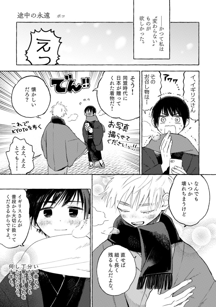 12サイトに鍵をつけたら、妙に強気になってきたので、昔の絵や漫画を上げようじゃあないかとデータを見返している最中ですそしたら!日英の四季アンソロジーの原稿が出てきました!だって日英ですよ、日英はいいですからね私にとって日本のテーマは「永遠」日本にとってイギリスは理想の「永遠」に近い存在ですわたくしといふ現象は仮定された有機交流電燈のひとつの青い照明です(あらゆる透明な幽霊の複合体)風景やみんなといつしよにせはしくせはしく明滅しながらいかにもたしかにともりつづける因果交流電燈のひとつの青い照明です(ひかりはたもち その電燈は失はれ)序 『春と修羅』 宮沢賢治MEMO日英新刊のお知らせ